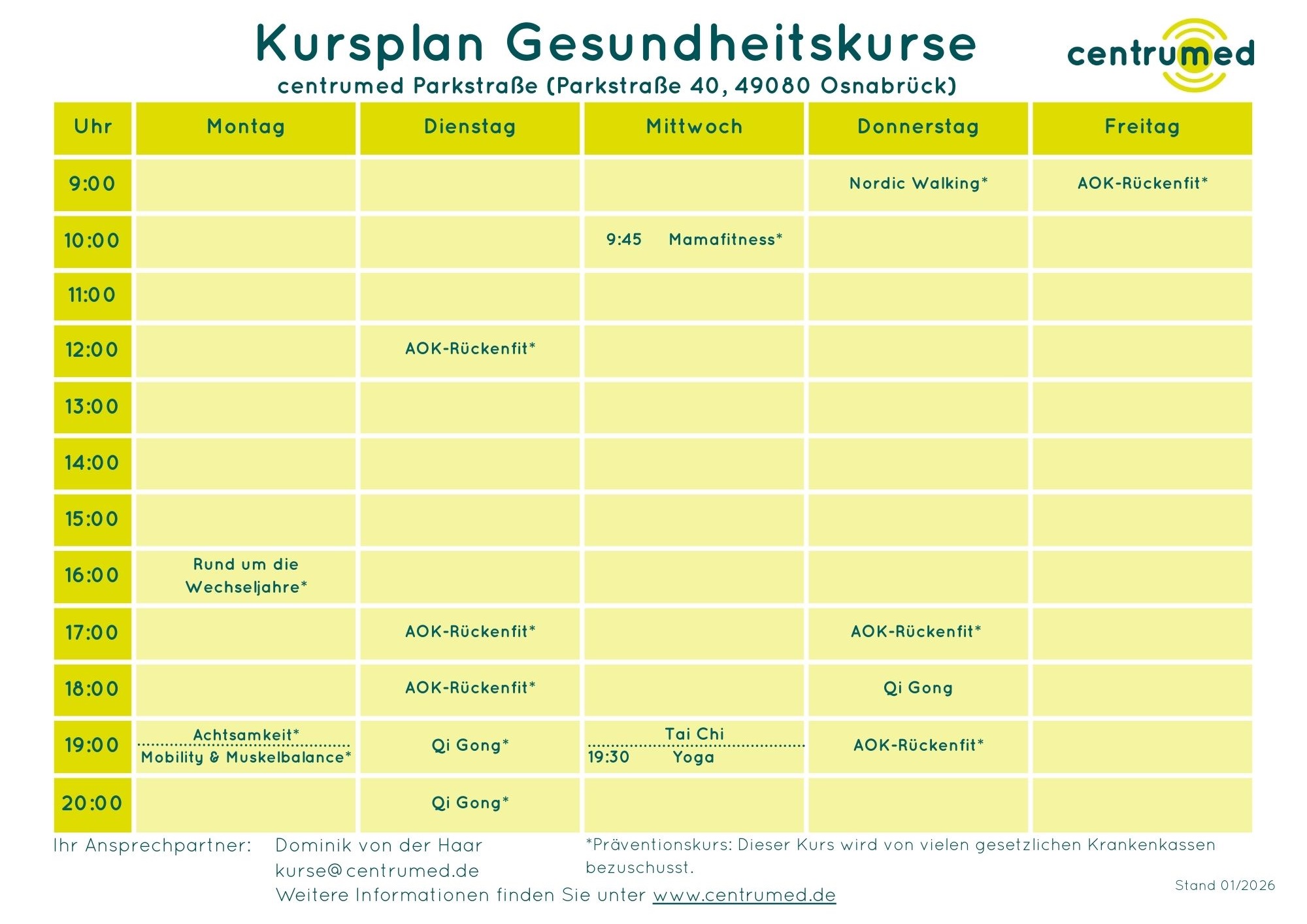 - Wo: Kursraum centrumed Parkstraße (Parkstraße 40, 49080 Osnabrück)